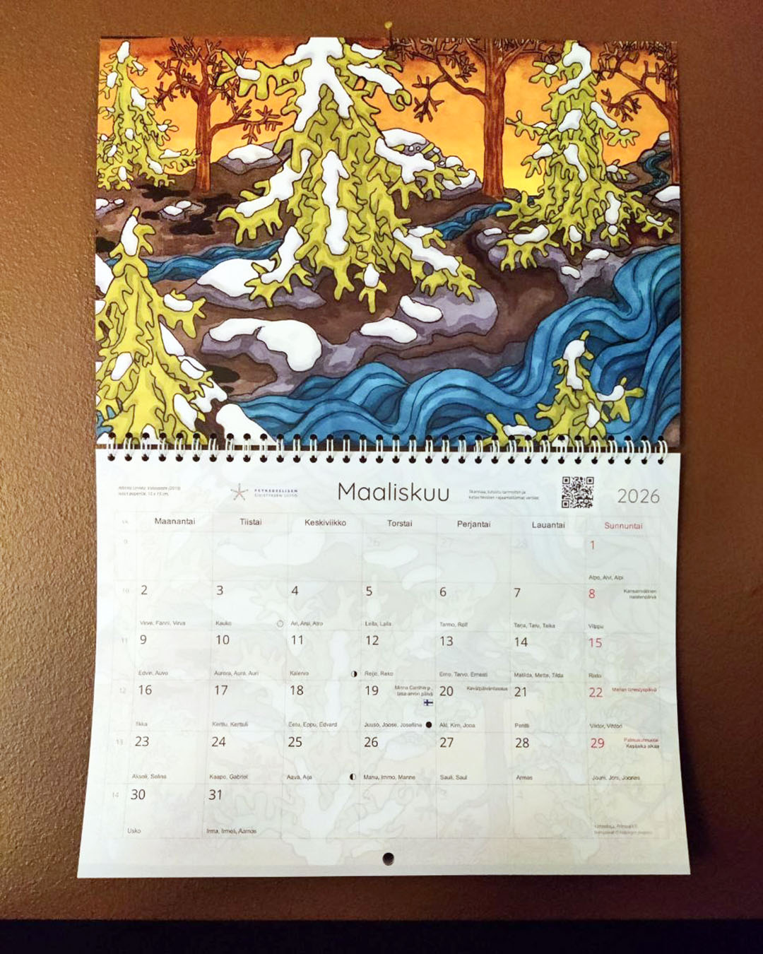 Jatkamme keväällä 2024 julkaistun Psykedeelit ja luovuus kotimaisessa kuvataiteessa -kuvataidekirjamme viitoittamia polkuja Psykedeelit ja luovuus -seinäkalenterilla vuodelle 2026. Mukana on taideteoksia neljältätoista taidekirjaamme ja -näyttelyymme osallistuneelta taiteilijalta. Yhtäkään kalenterin teoksista ei ollut kirjassa, mutta muutamia niistä nähtiin julkaisun yhteydessä järjestetyssä taidenäyttelyssä. Kalenterin sivukoko on A4.