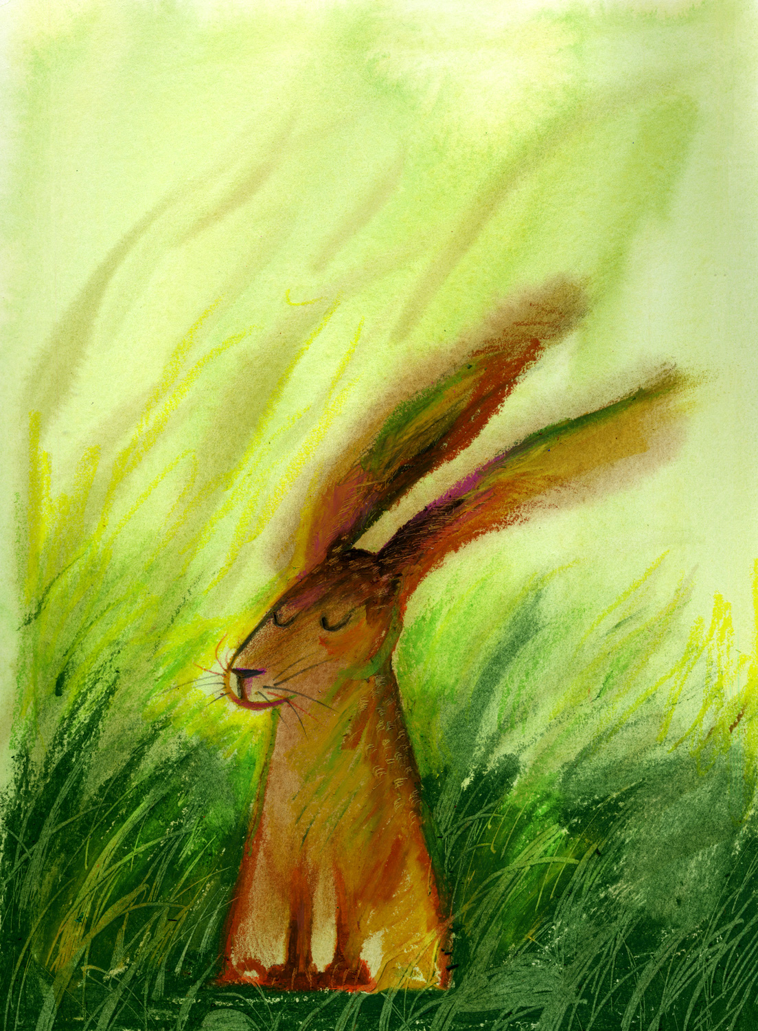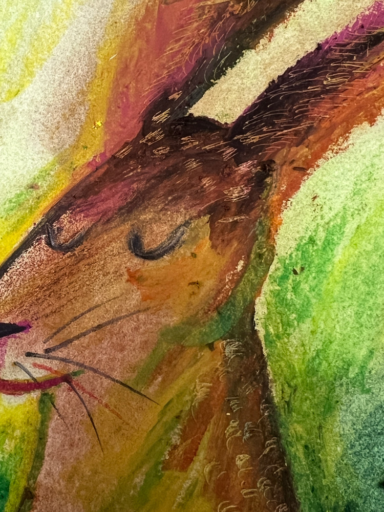 Oil pastel, watercolor, pencil, white acrylic.