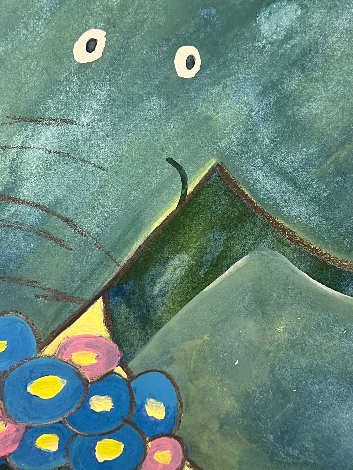 Watercolor, white acrylic, pen.