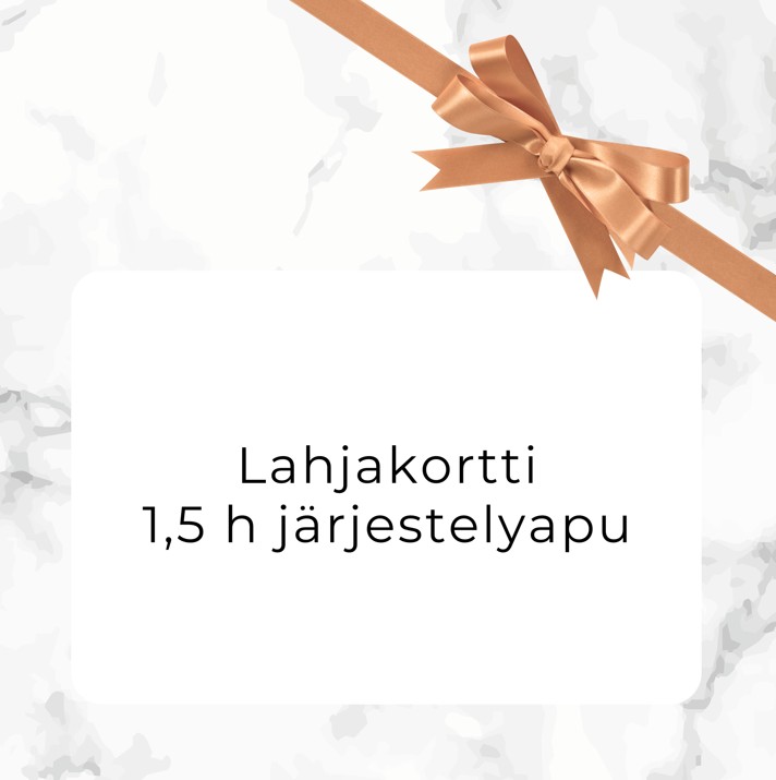 Anna lahjaksi selkeyttä kotiin. Lahjakortti Tavaravalmentajan järjestelyapuun Joensuun seudulla. Voimassa 3 kuukautta ostohetkestä.