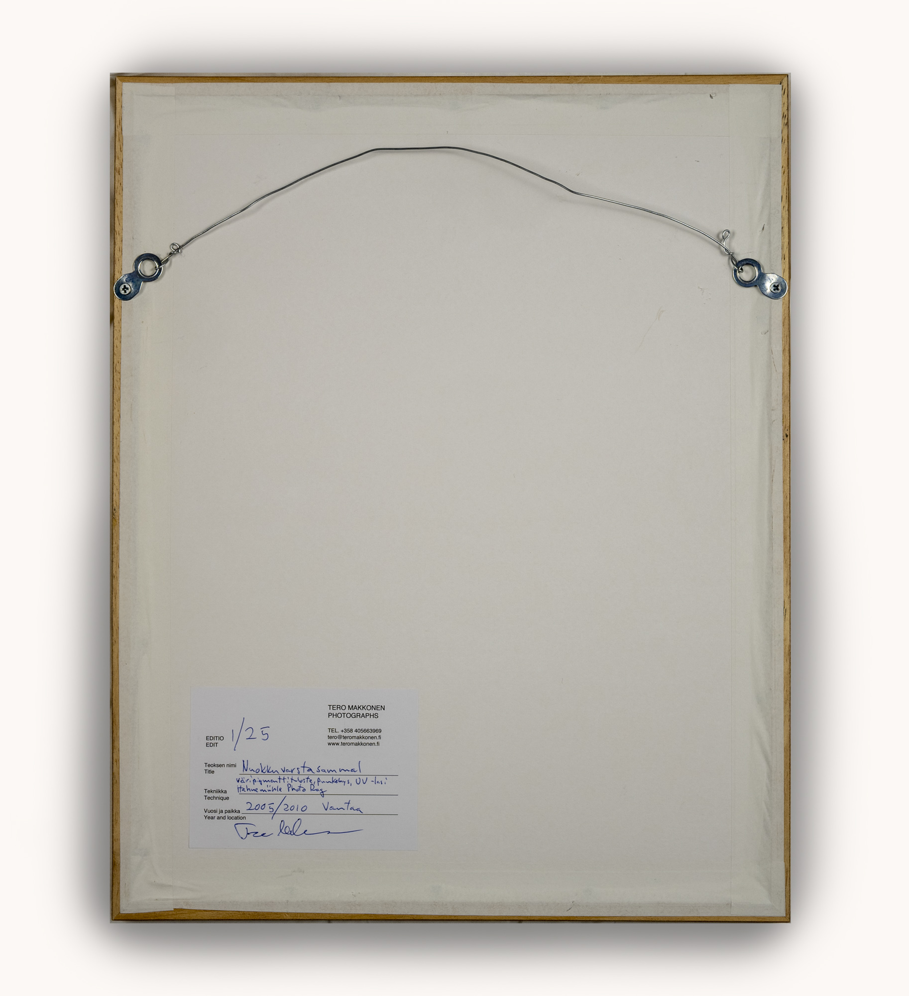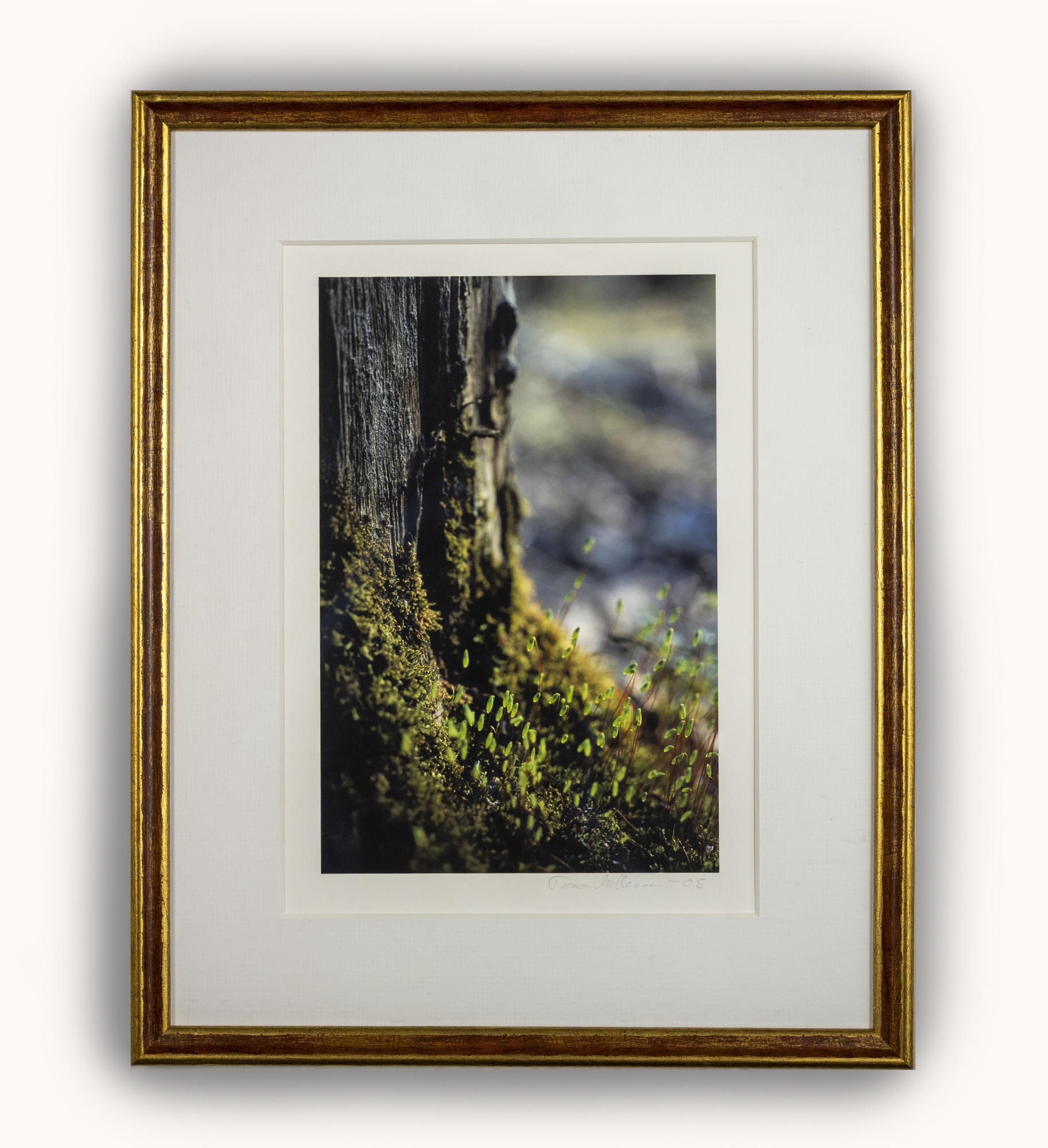 Nuokkuvarstasammal, toukokuu 2005, kuvan koko 16 x 24 cm, kehystettynä 21 x 29 cm, Hahnemühle Photorag -happovapaa paperi. Kehykset L&J punakulta, heijastamaton ja UV-suojattu claryll-lasi. Kaikki materiaalit konservointilaatua.