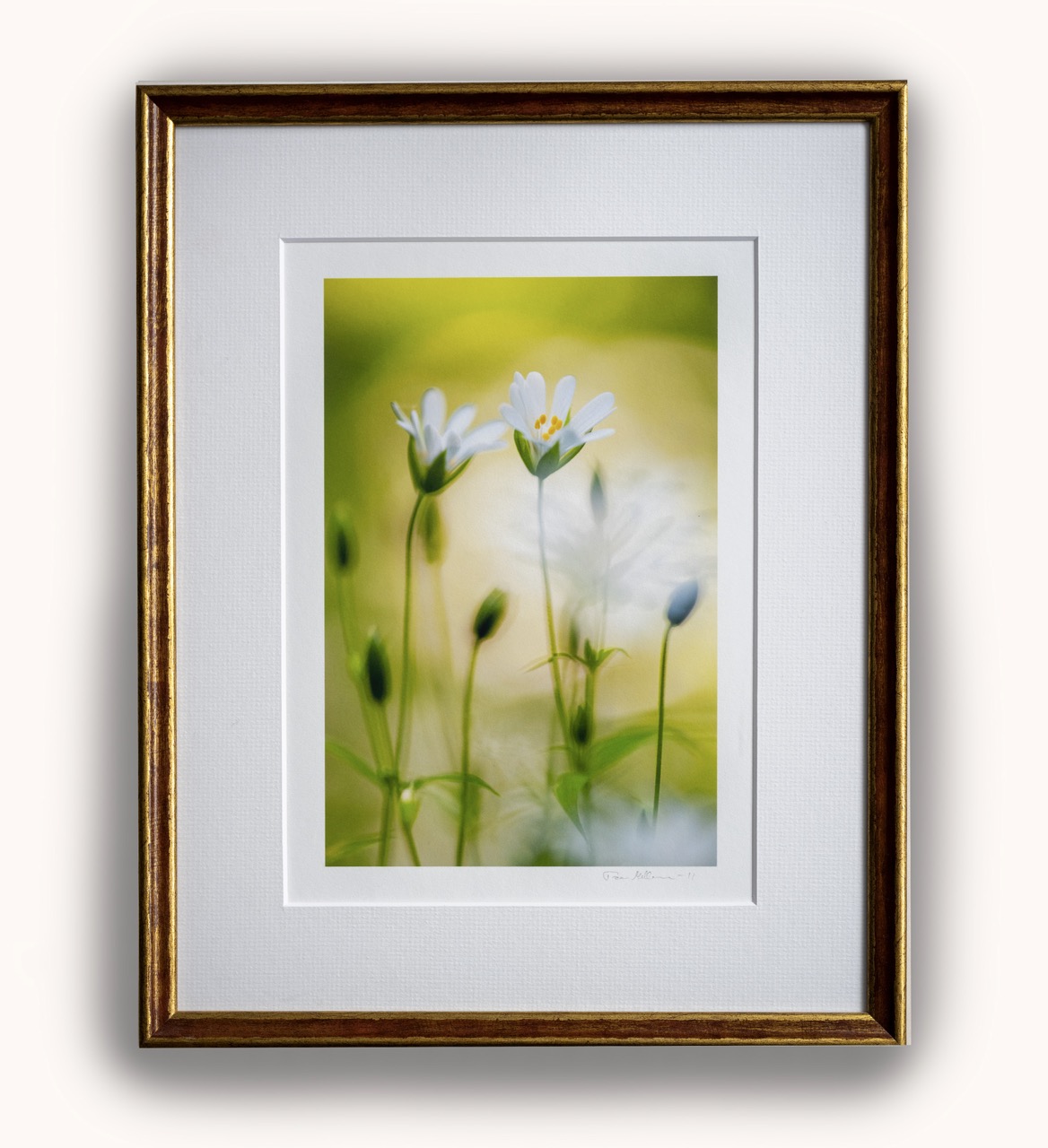 Kevättähtimö, toukokuu 2011, kuvan koko 16 x 24 cm, kehystettynä 21 x 29 cm, Hahnemühle Photorag -happovapaa paperi Kehykset L&J punakulta, lasi heijastamaton ja UV-suojattu claryll-lasi, kaikki materiaalit konservointilaatua.