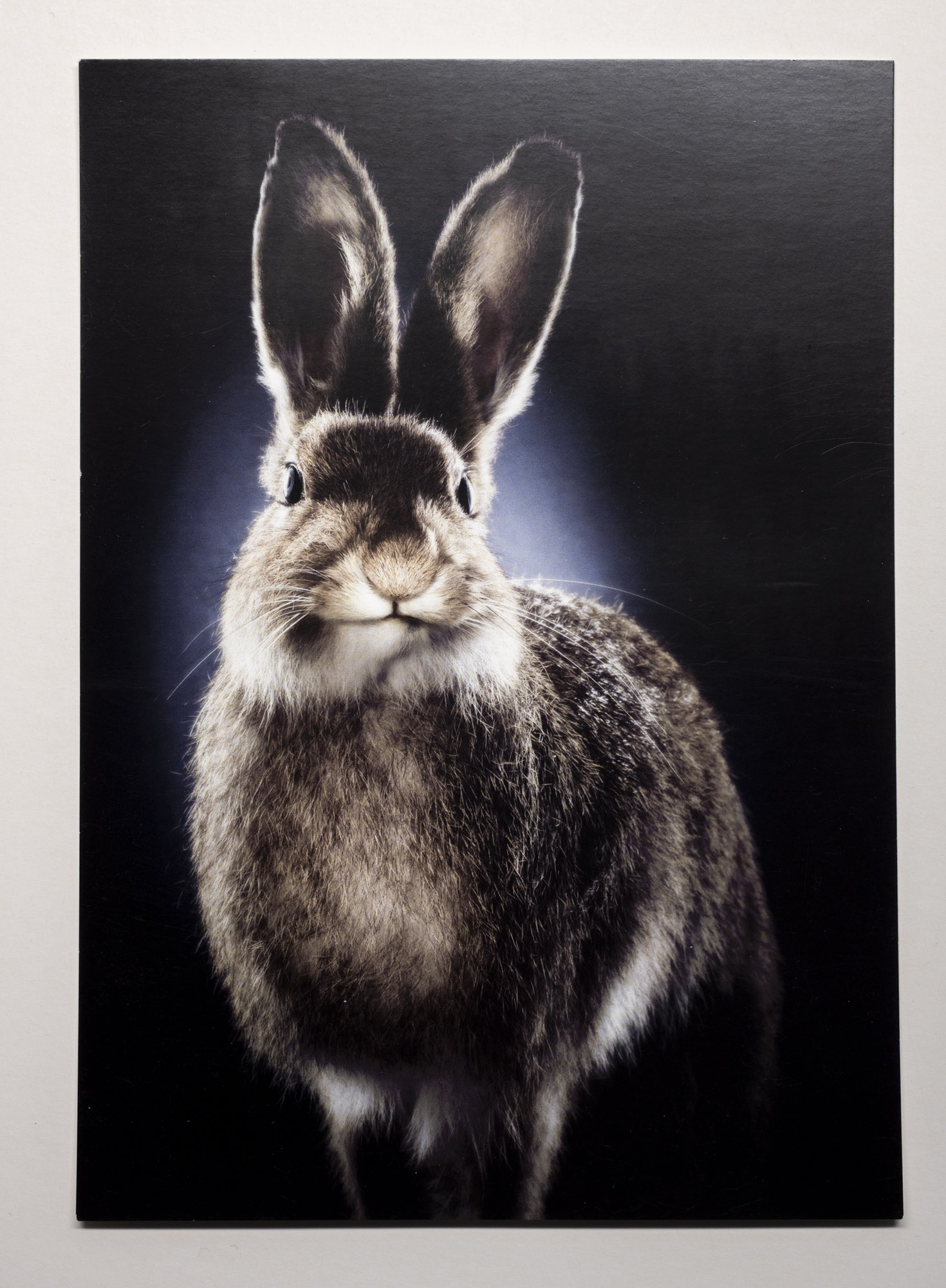 Lepus Valkko, metsäjänis, 2018 14,8 x 21 cm Taidepostikortti Ilvolan väkeä -sarjan valokuvateoksista, kartonki