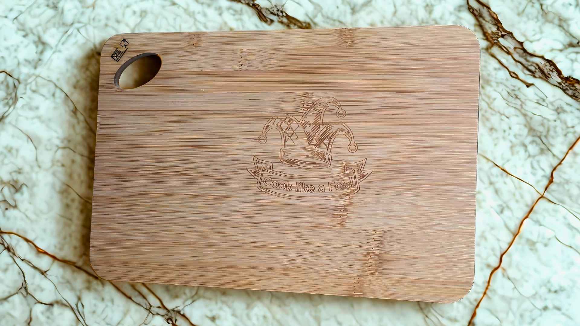 Tyylikäs bambuinen leikkuulauta kaiverruksella Cook like a Fool. 30x20x1 cm