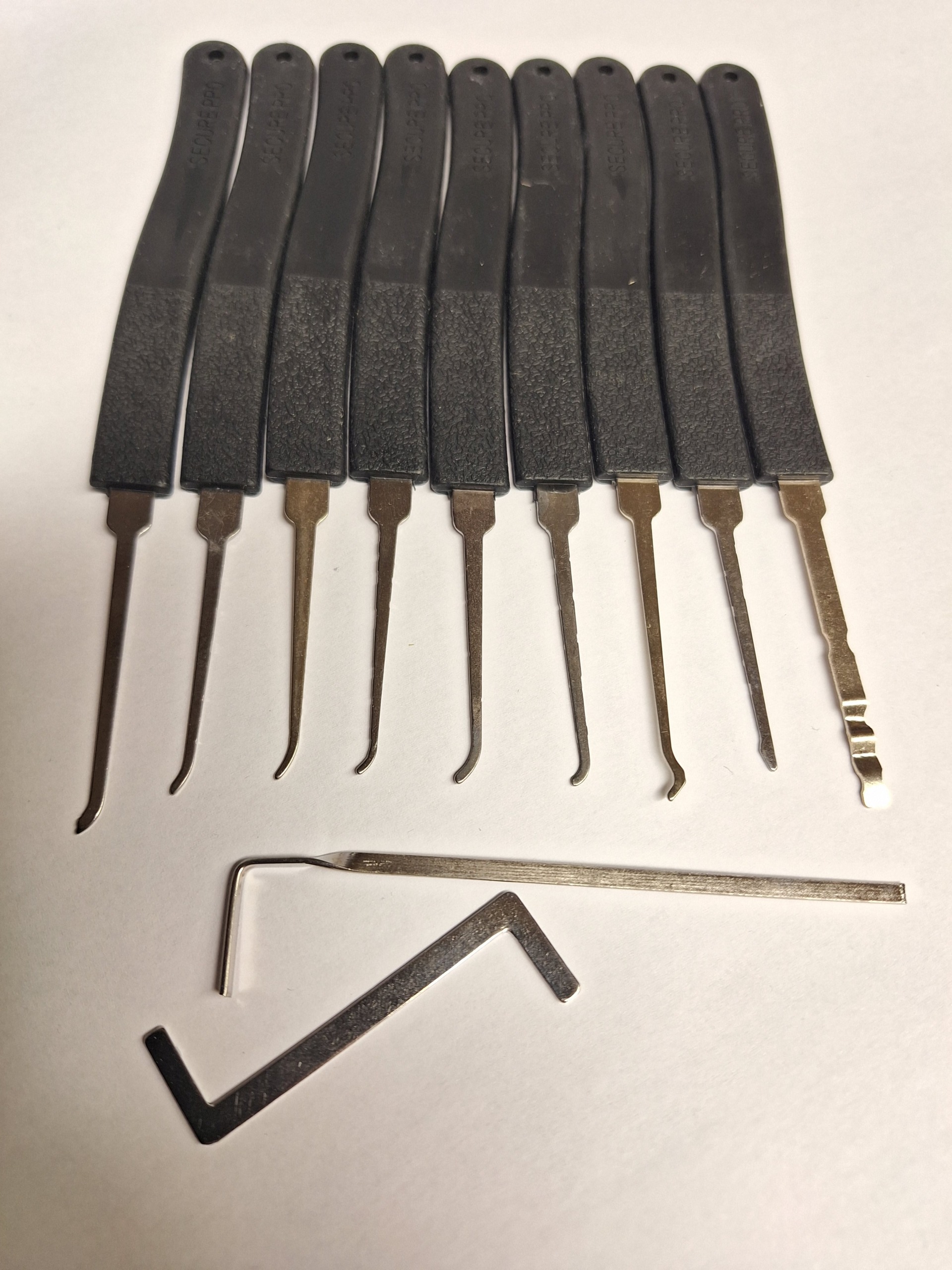 Sisältää 9 kpl erilaisia tiirikoita, joista 6 kpl on eriasteisia koukkuja tehokkaaseen työskentelyyn ja helpottamaan ulottumista tappipinojen ohi. Mukana tulee lisäksi kaksi kappaletta vääntimiä, jotka toimivat suurimpaan osaan lukkoja sellaisenaan. Ergonominen kahva ja hyvin hiottu kärkiosa takaavat pehmeän tuntuman lukkoon.