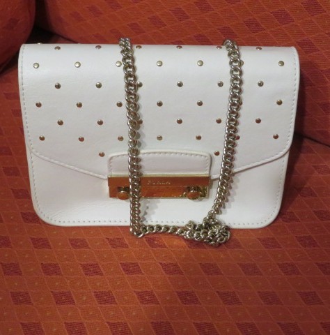 Uudenveroinen Furla laukku, jossa ylellinen ketju olkahihnana. laukun koko 17x13 cm.