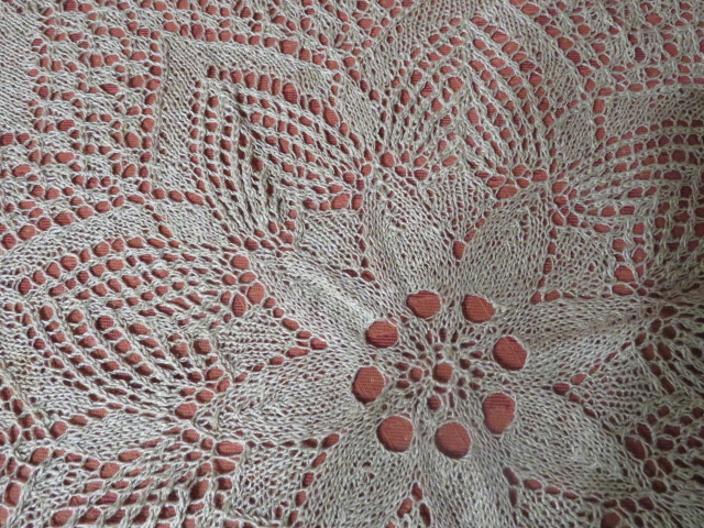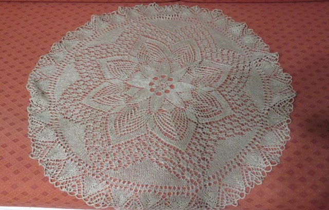 Käsin neulottu pyöreä liina. Halkaisija 65 cm.