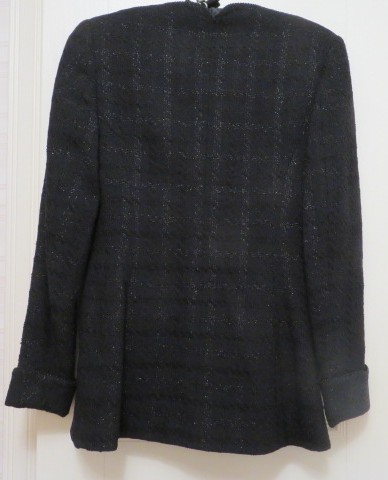 Upea englantilainen jakku Caroline Charles. Koko 38. Kangas on kaunista kiiltoraitaista. Viimeistellyt yksityiskohdat. Pituus 75 cm.