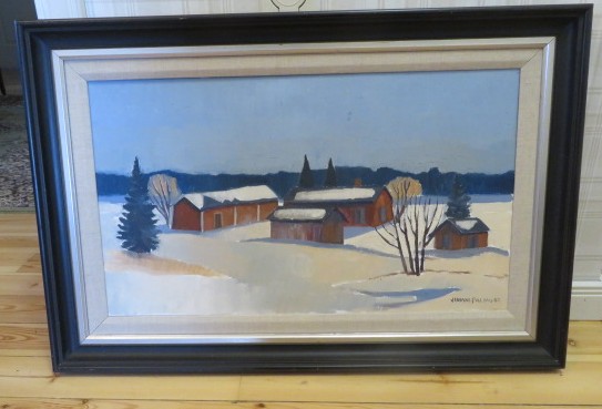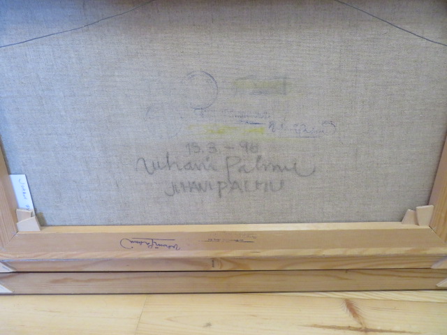 Taidetta Juhani Palmu. Koko 75x60 cm kehyksineen.