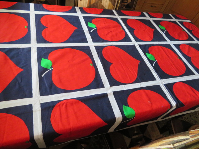 Kaunis vintage pöytäliina Omena. Koko 120x250 cm. Uudenveroinen.