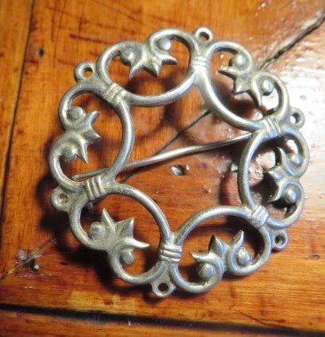 Hopeinen KK solki. Halkaisija 40 mm. Säilytyspussukka mukana.
