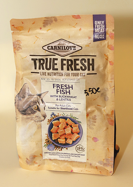 Kalajauhoton, viljaton, perunaton ja GMO-vapaa täysravinto aikuisille sekä kastroiduille/steriloiduille kissoille. Valmistettu Tšekissä.