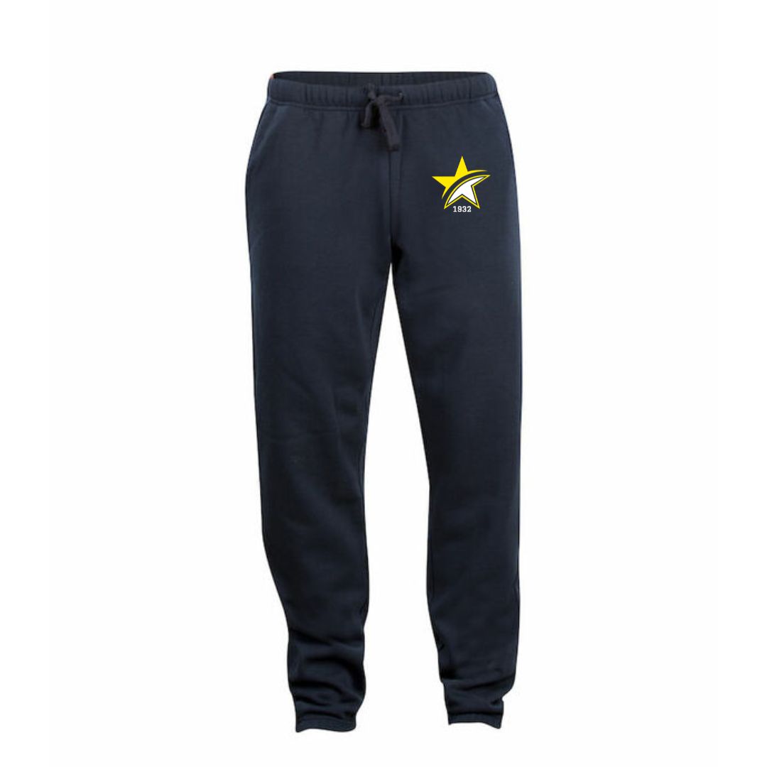 Cliquen lasten collegehousut. Kiristysnauha vyötäröllä ja lahkeensuissa kuminauhakiristys. Pieni ToPo-tähtilogo painettuna reiteen.