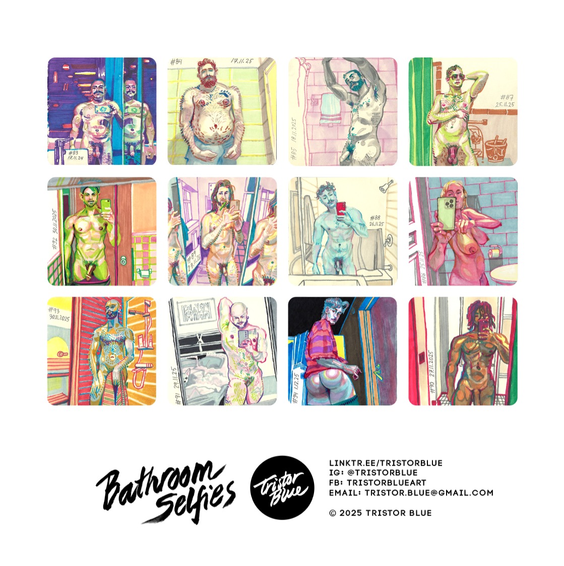 21 x 21 cm, Wall calendar 12 Bathroom Selfie portraits in colorful prints.