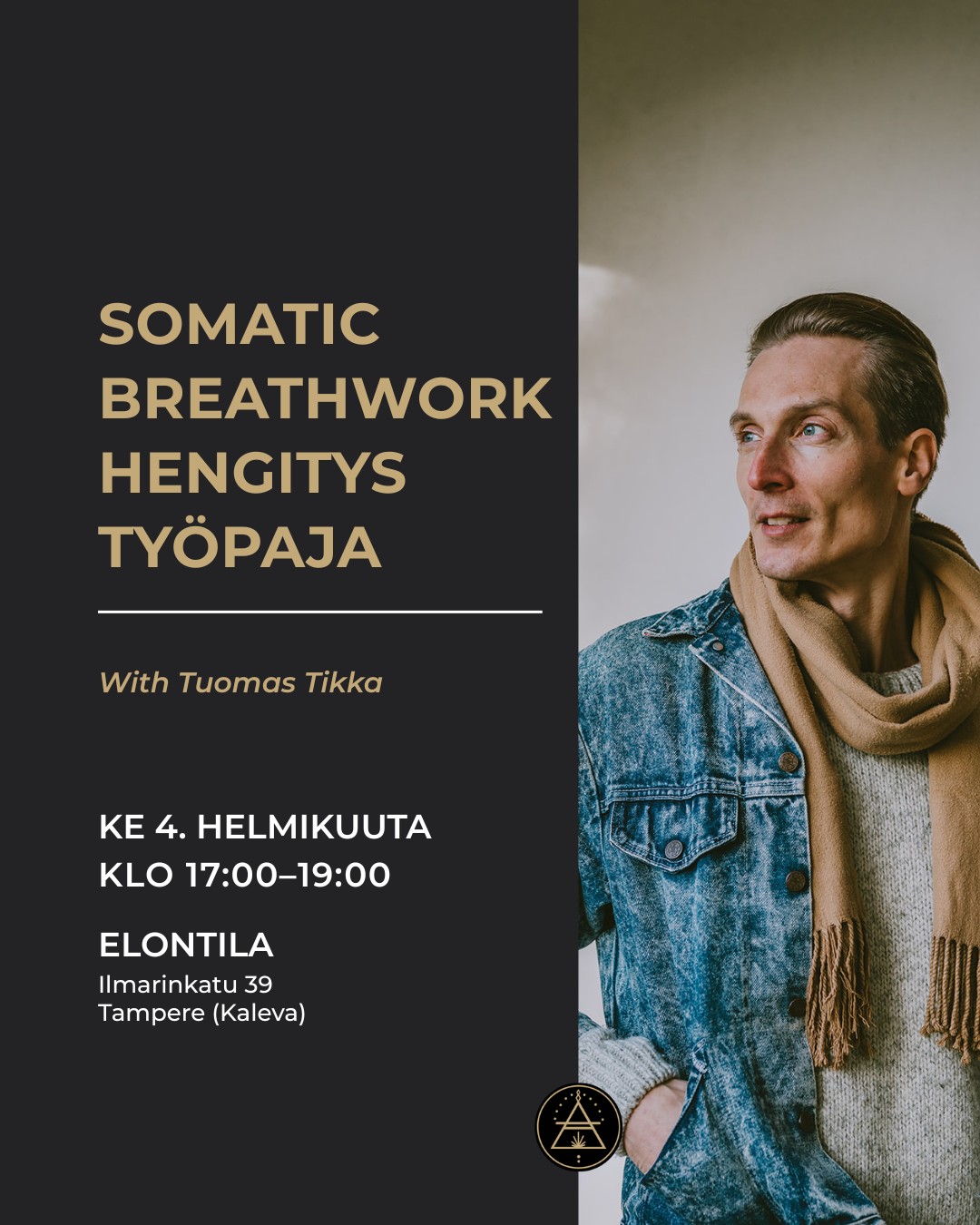 Tervetuloa hengittämään mieleen rauhaa, kehoon elinvoimaa ja sydämeen vapautta. Somaattinen Breathwork hengitystyöpaja kutsuu sinut kohtaamaan itsesi hengityksen kautta. Tietoinen hengitys avaa yhteyden kehoon, alitajuntaan ja sisäiseen viisauteen – sinne, missä elämän kokemukset, tunteet ja oivallukset ovat kerrostuneet.