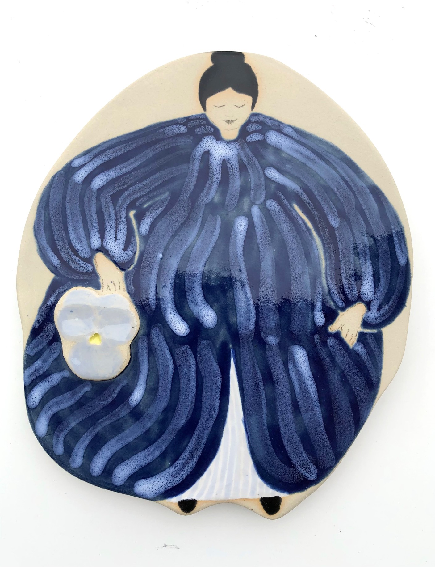 Koko: noin 24 x 22 cm. 2025. Lasitettu kivitavara. Teos on signeerattu ja työn takana on kiinnitysosa valmiina. Postitus kuuluu teoksen hintaan. Myös nouto on mahdollinen työhuoneeltani Sipoosta.