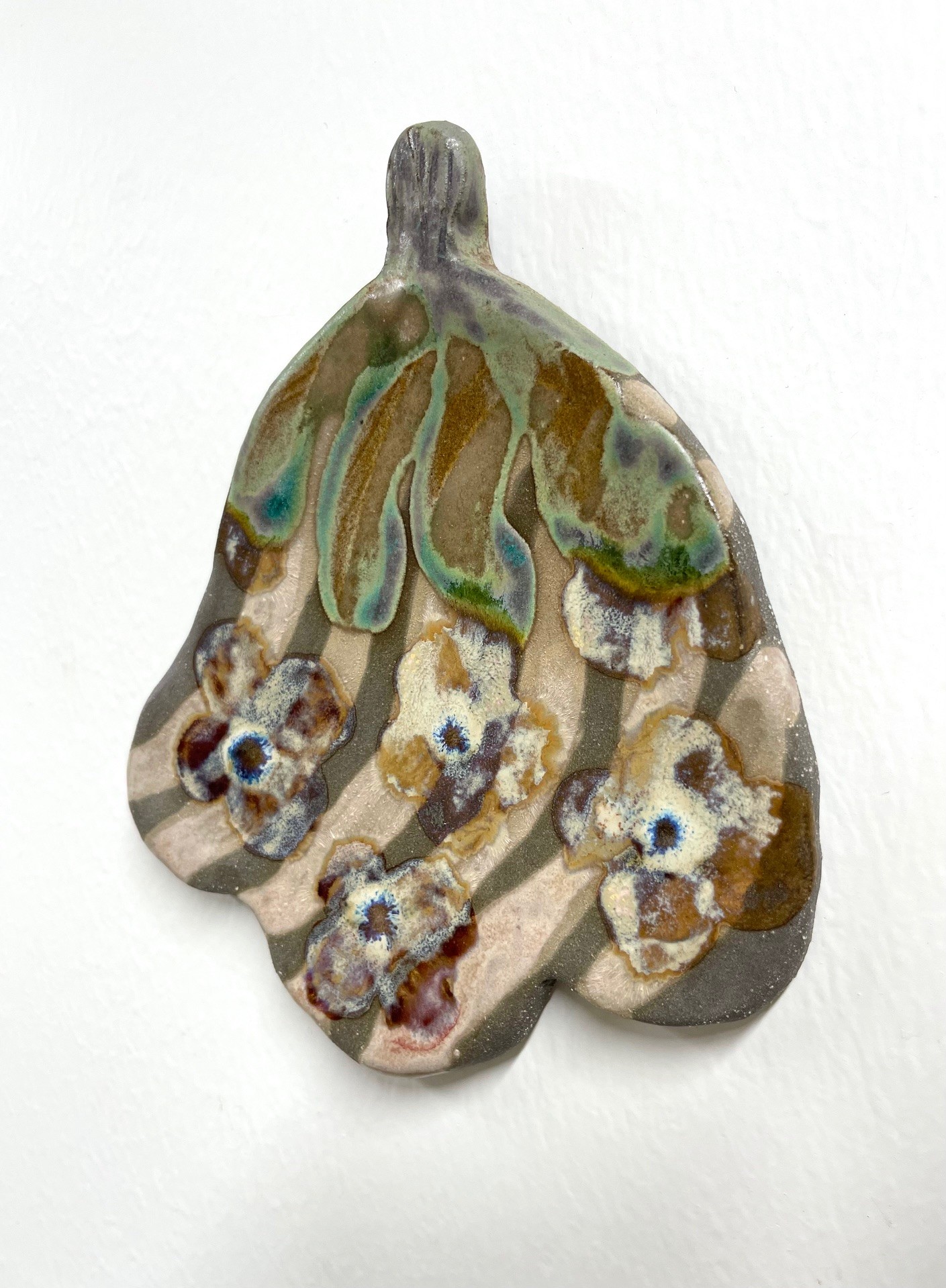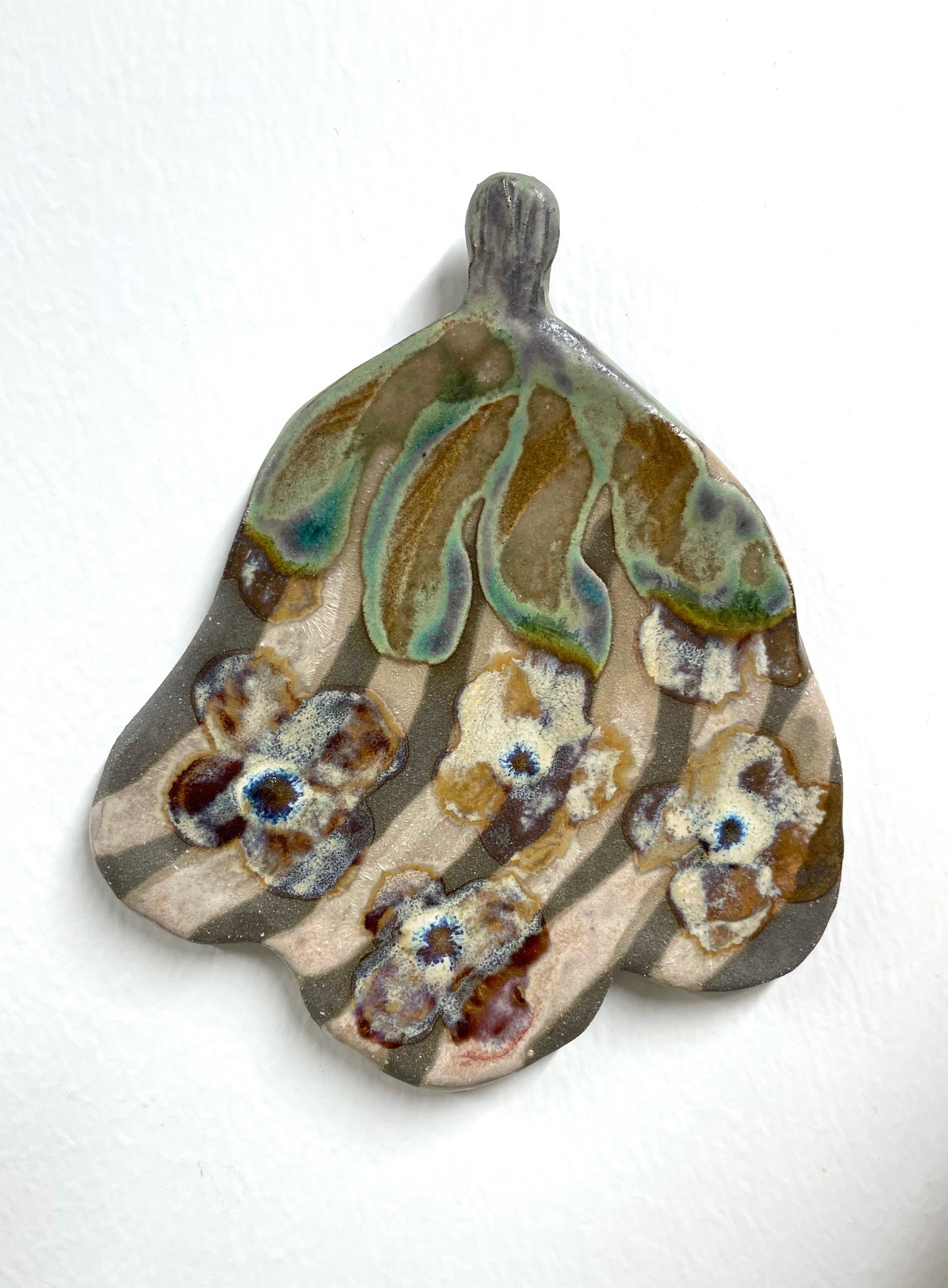 Teos on kokeilu. Koko noin 17 x 15 cm. Teos on signeerattu ja työ on muotoiltu niin, ettei seinään tarvita kuin koukku/naula tms. Postitus sisältyy hintaan. Teos on myös noudettavissa työhuoneeltani Sipoosta erikseen sovittaessa.