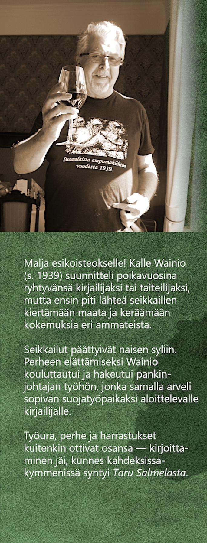 Kalle Wainio (s. 1939) suunnitteli poikavuosina ryhtyvänsä kirjailijaksi tai taiteilijaksi, mutta ensin piti lähteä seikkaillen kiertämään maata ja keräämään kokemuksia eri ammateista.