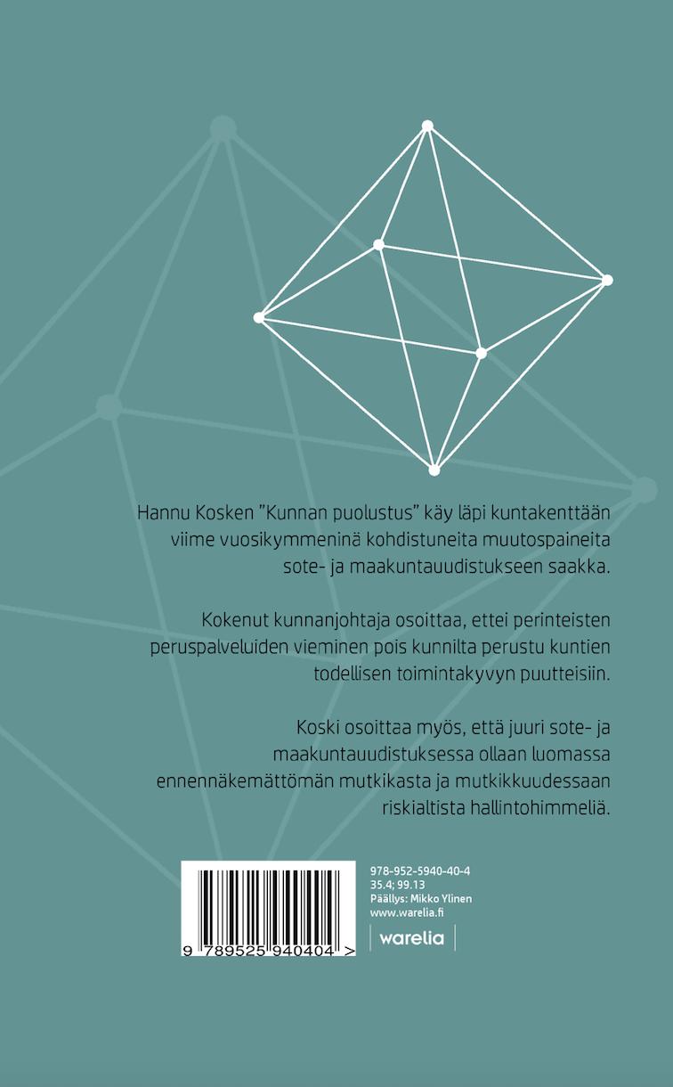 Hannu Kosken "Kunnan puolustus" käy läpi kuntakenttään viime vuosikymmeninä kohdistuneita muutoksia ja muutospaineita sote- ja maakuntauudistukseen saakka.