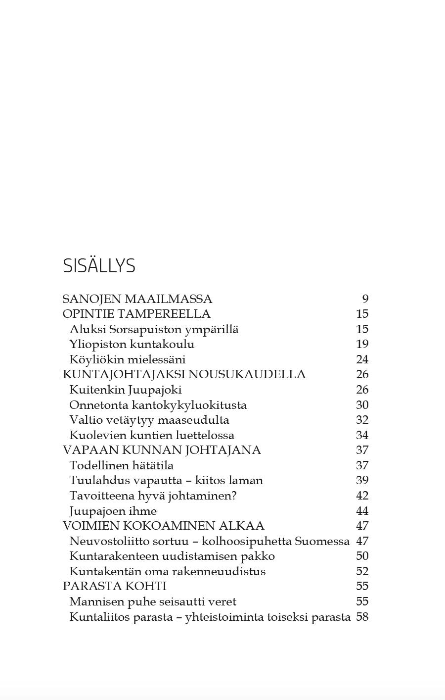 Klikkaa >-merkkiä ja katso mm. kirjan sisällysluettelo, kuntaluettelo ja henkilöluettelo.