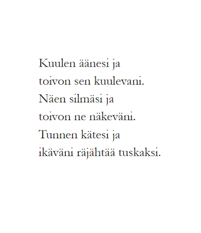 Omien tunteiden ja kokemusten sanoittaminen on osa parantavaa surutyötä. Tuomilaakson säkeet ovat kädenojennus toiselle surevalle.