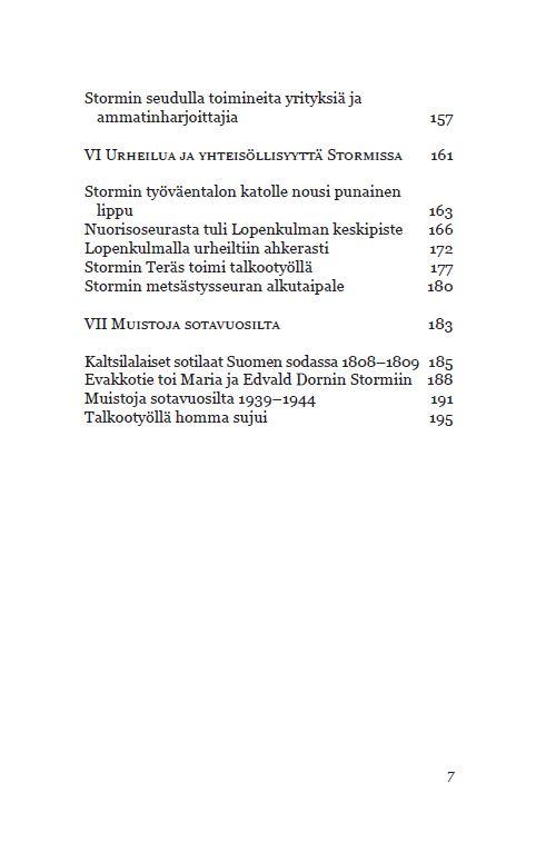 Armi Hohko kertoo Stormin seudusta pidetyllä tyylillään. Hohko kirjoittaa paikallishistoriaa tarinallisesti ja ihmisläheisesti, ruohonjuuritasolla. Yhdessä kertomukset muodostavat vaikuttavan kokonaiskuvan Stormin seudun vanhasta elämänmenosta.