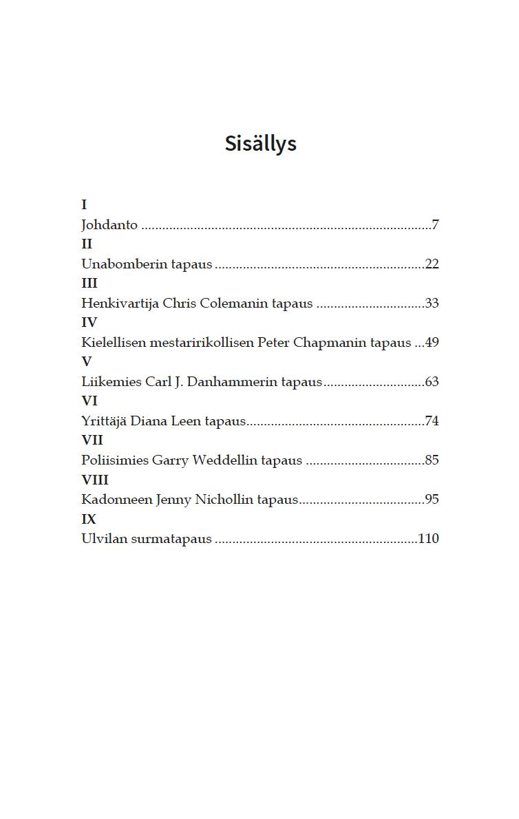 Roosa Rentola kertoo rikostapauksista, joiden selvittämisessä kielentutkijoilla on ollut merkittävä osuus. Kirjan tosikertomukset sijoittuvat pääasiassa ulkomaille, mutta Rentola luo kiinnostavia näkökulmia myös kahteen tunnettuun suomalaiseen rikostapaukseen - toisen tutkinnassa kielentutkimuksen tuottamaa tietoa olisi voitu hyödyntää enemmän.