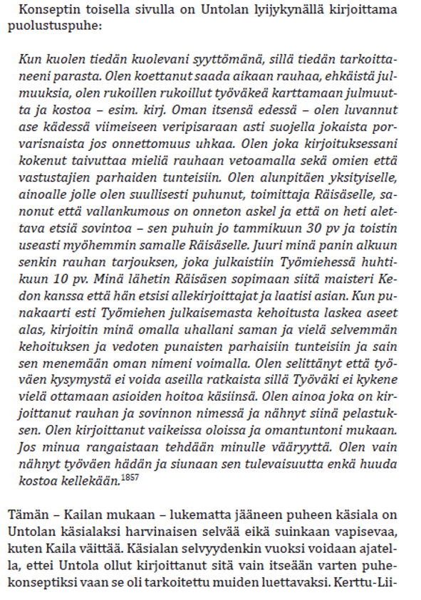 Puolustuspuheen tekstin syntyolosuhteet, koko puolustuspuhe täsmällisessä muodossaan ja dokumentin vaiheet.