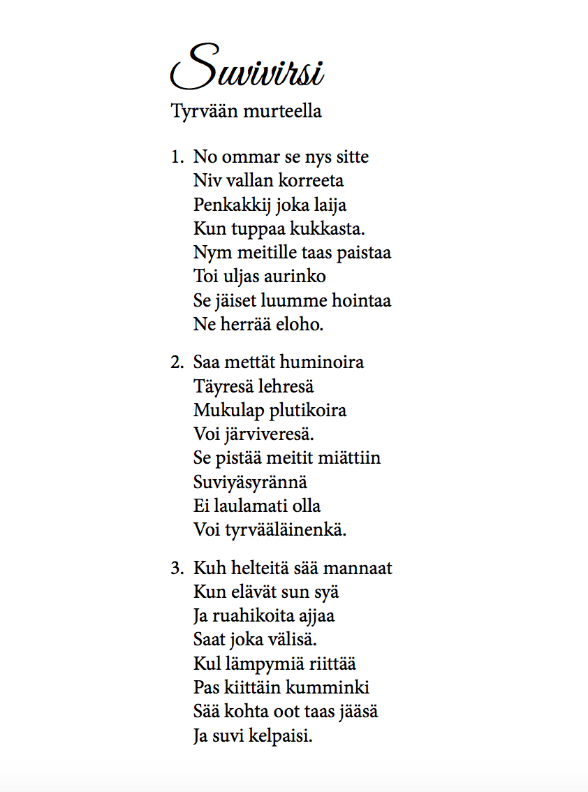 Onnittelukortti "Suvivirsi Tyrvään murteella". 5 kpl.