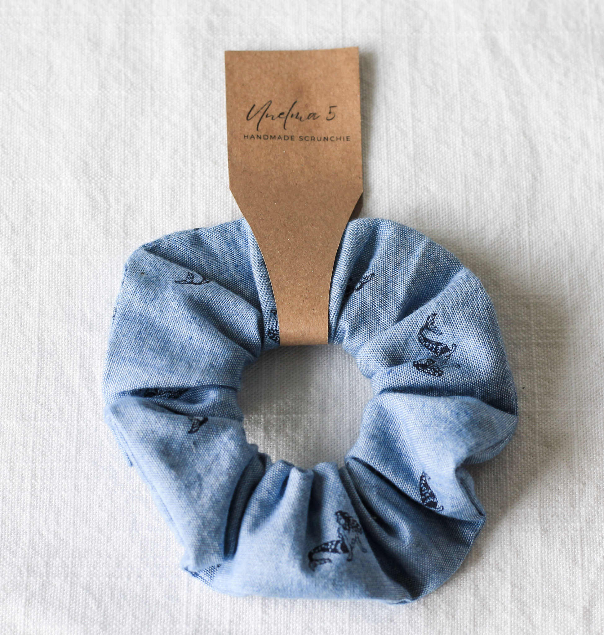 Käsintehty scrunchie eli hiusdonitsi, jossa on heleän vaaleansininen pohja ja kaunis merenneitokuosi. Kevyt ja raikas ilme tekee siitä monikäyttöisen asusteen, joka sopii arkeen ja juhlaan. Donitsi pysyy hyvin hiuksissa ilman että repii tai vahingoittaa niitä, ja se toimii myös rannekorumaisena yksityiskohtana hiusten ollessa auki.