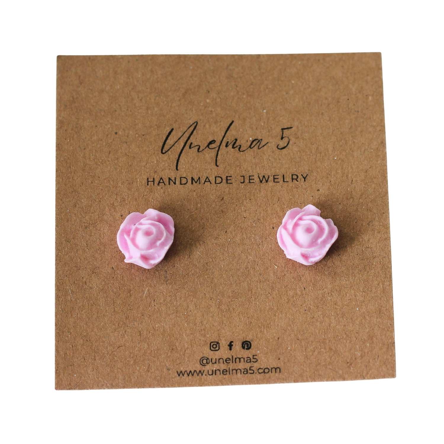 Kauniit käsintehdyt nappikorvakorut, joissa on herkkä vaaleanpunainen ruusukuvio. Korvakorut ovat kevyet ja mukavat käyttää, ja ne tuovat romanttista ilmettä sekä arkeen että juhlaan. Täydellinen lahjaidea korujen ystävälle tai omaan korukokoelmaan.