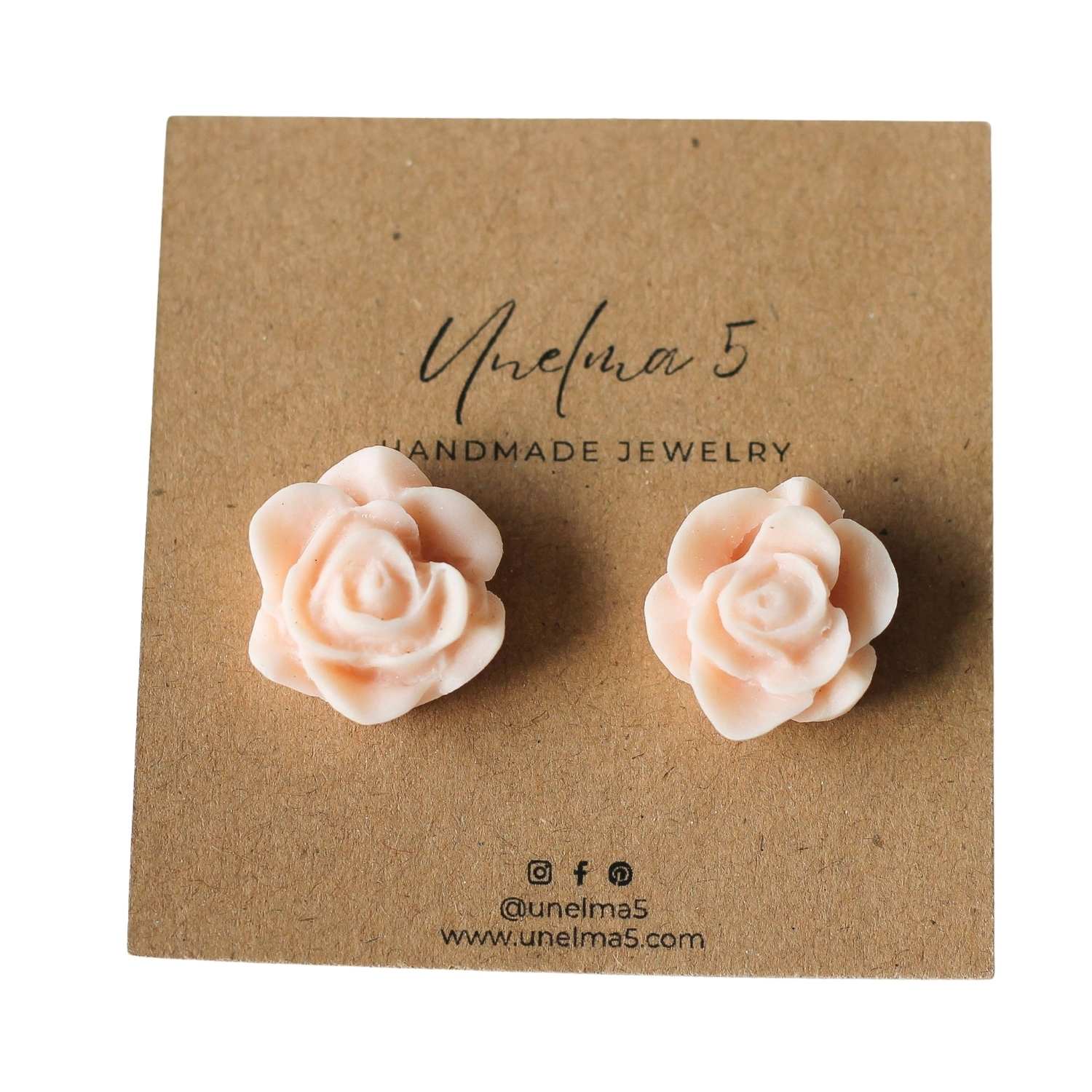 Käsintehdyt nappikorvakorut, joissa on herkät persikanvaaleat ruusut. Kevyet ja mukavat korvissa, nämä korvakorut sopivat täydellisesti romanttiseen tyyliin, arjen piristykseksi tai juhla-asun viimeistelyyn. Yksinkertainen mutta näyttävä lisä korukokoelmaan.