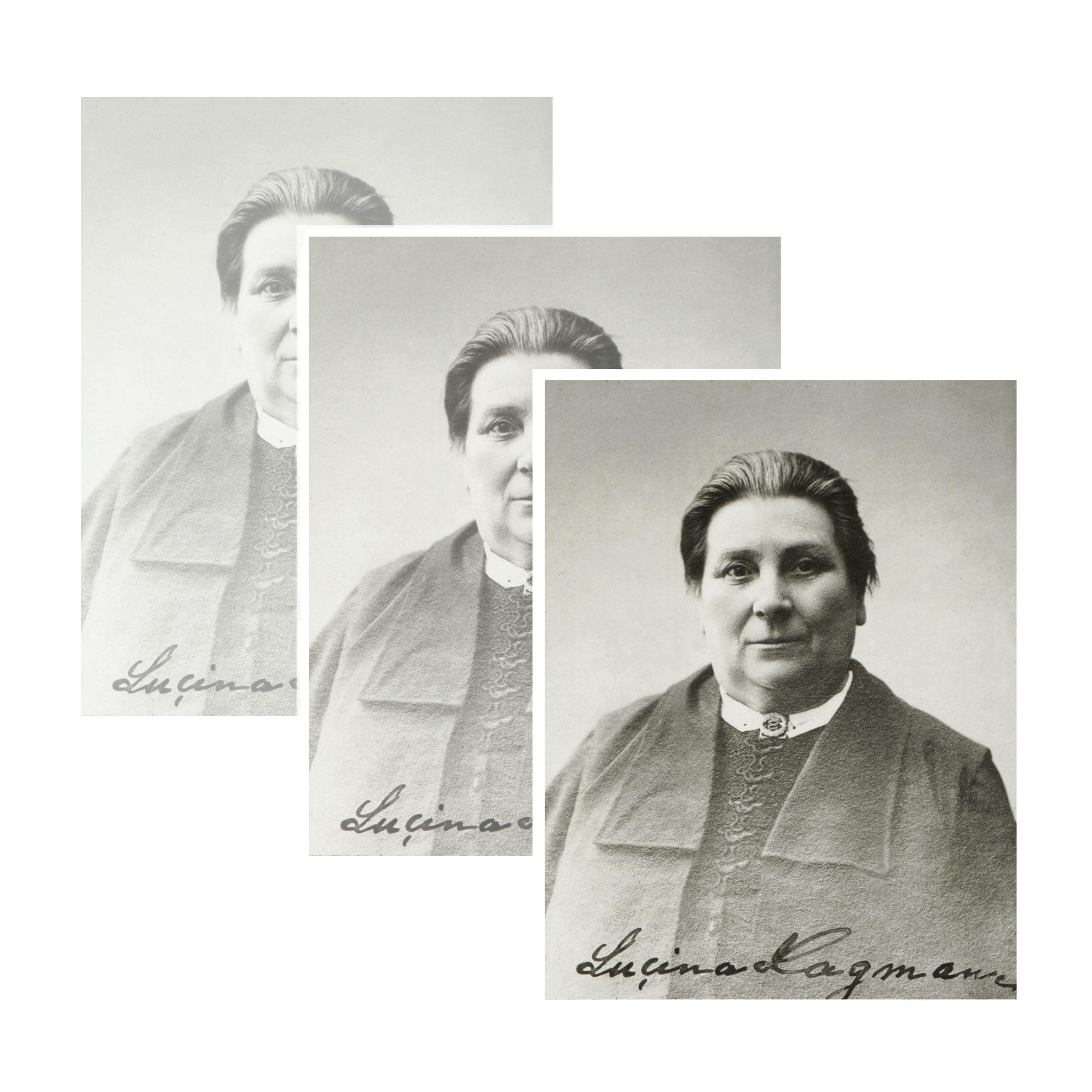 3 kappaletta "Lucina Hagman"-postikorttia. Lucina Hagman. Kuva: Unionin arkistosta. Laita lisätiedustelua suuremmista kappale eristä!