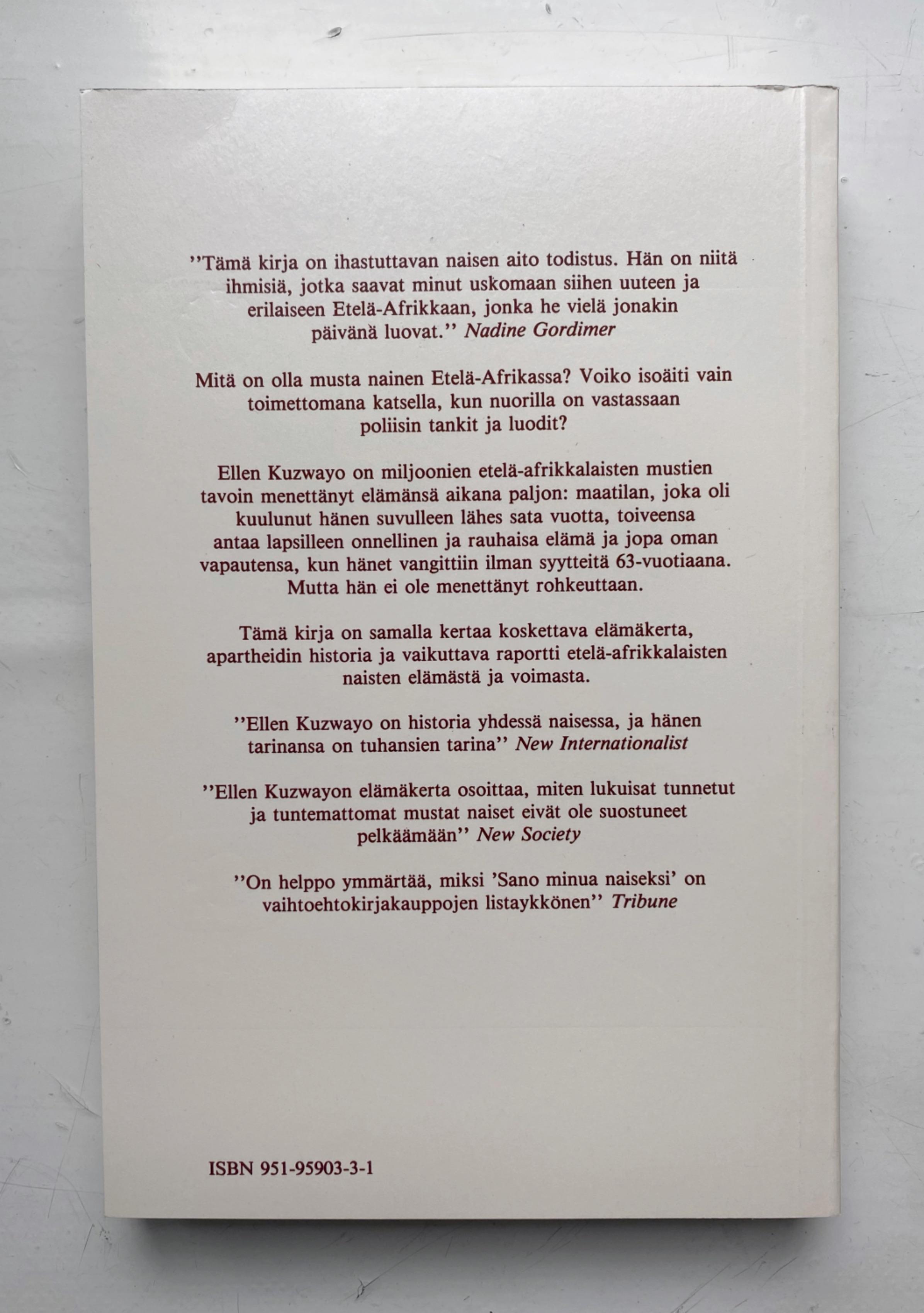 Naisten Kulttuuriyhdistys ry:n julkaisema romaani vuodelta 1985.