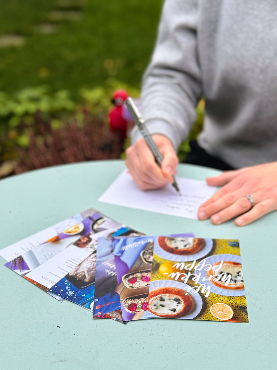 Urbaani vegendan herkulliset postikortit. Paketti sisältää 7 kpl erilaisia postikortteja, joista kahdessa on resepti.
