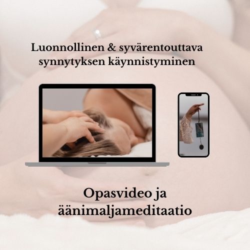 Tämä materiaali on tarkoitettu synnytystä tukevaksi hyvinvointituotteeksi, ei lääketieteelliseksi hoitomuodoksi. Tämä tuote ei korvaa terveydenhuollon ammattilaisten antamia ohjeita, neuvoja tai hoitoa. Vyöhyketerapia ja äänimaljameditaatio ovat täydentäviä menetelmiä, jotka voivat tukea kehon luonnollisia prosesseja, mutta niiden vaikutukset ovat yksilöllisiä. Synnytyksen kulku on monimutkainen fysiologinen prosessi, eikä mikään menetelmä voi taata synnytyksen käynnistymistä tietyssä ajassa tai tietyllä tavalla. Käyttäjä vastaa itse tuotteen käytöstä ja sen vaikutusten arvioinnista omassa tilanteessaan. Käytä tuotetta vain, jos raskautesi etenee normaalisti ja ilman komplikaatioita. Mikäli sinulla on terveydellisiä huolia, erityisiä raskauteen liittyviä riskejä tai epävarmuutta tuotteen käytöstä, keskustele aina ensin lääkärisi, kätilösi tai muun terveydenhuollon ammattilaisen kanssa. Tuotteen käyttö tapahtuu täysin omalla vastuulla. Tekijä ja myyjä eivät ole vastuussa mistään suorista tai epäsuorista vaikutuksista, jotka voivat liittyä tämän tuotteen käyttöön. Jos tunnet epämukavuutta, kipua tai muita poikkeavia oireita käytön aikana, keskeytä käyttö välittömästi ja ota tarvittaessa yhteys terveydenhuoltoon.