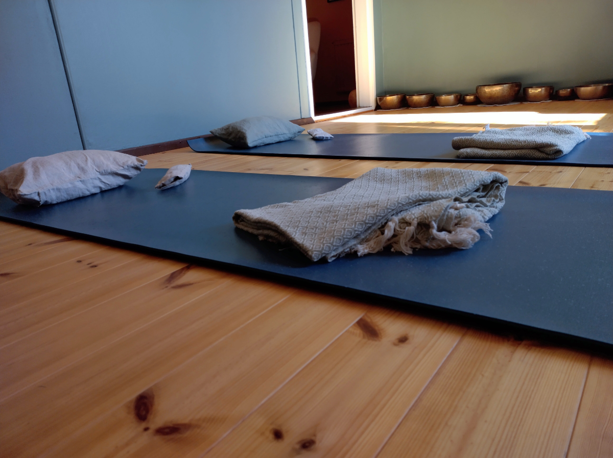 Ohjaaja rentoutuksena ja soitan äänimaljoja. Vastaanotatte istuen tai makoillen joogamaton päällä. Äänimaljojen äänet ja värähtelyt voi tuntea puulattiaa pitkin, kehossasi ja kuullen äänimaljojen aaltoilevat äänet.