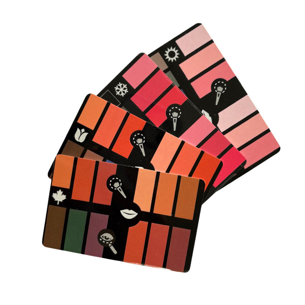 Huomioithan, että kuvassa on eri värivuodenaikojen väripaletit, eivätkä kaikki sävyt ole näkyvillä.
