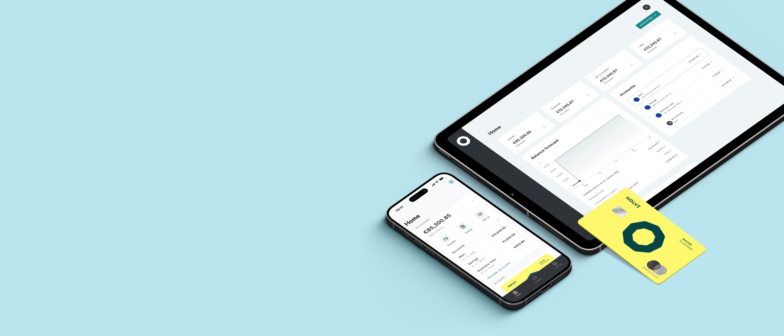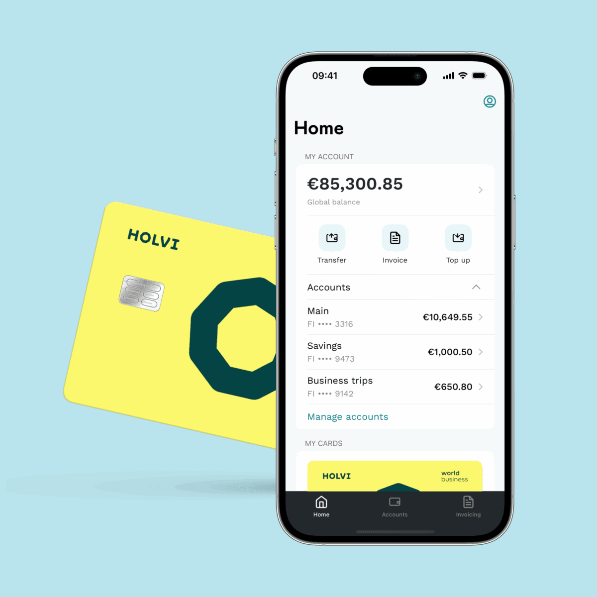 - Financial insights – track spending and keep an eye on KPIs in your Holvi dashboard