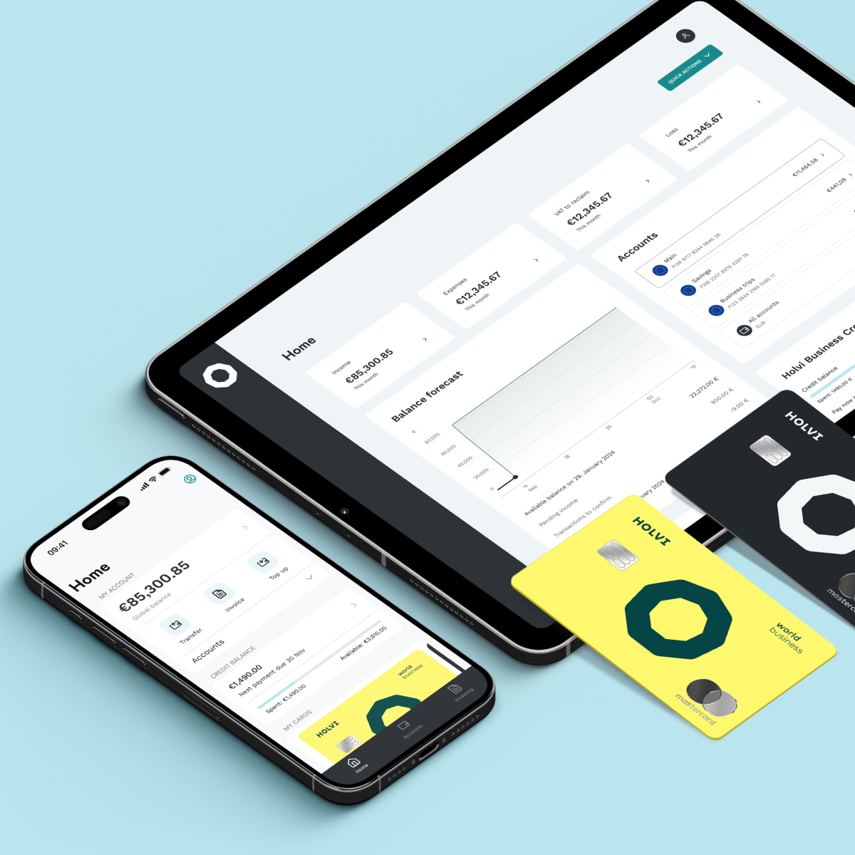 With Holvi, you get more than just a business account. Business banking, expense management and smart payment cards – all in one account.