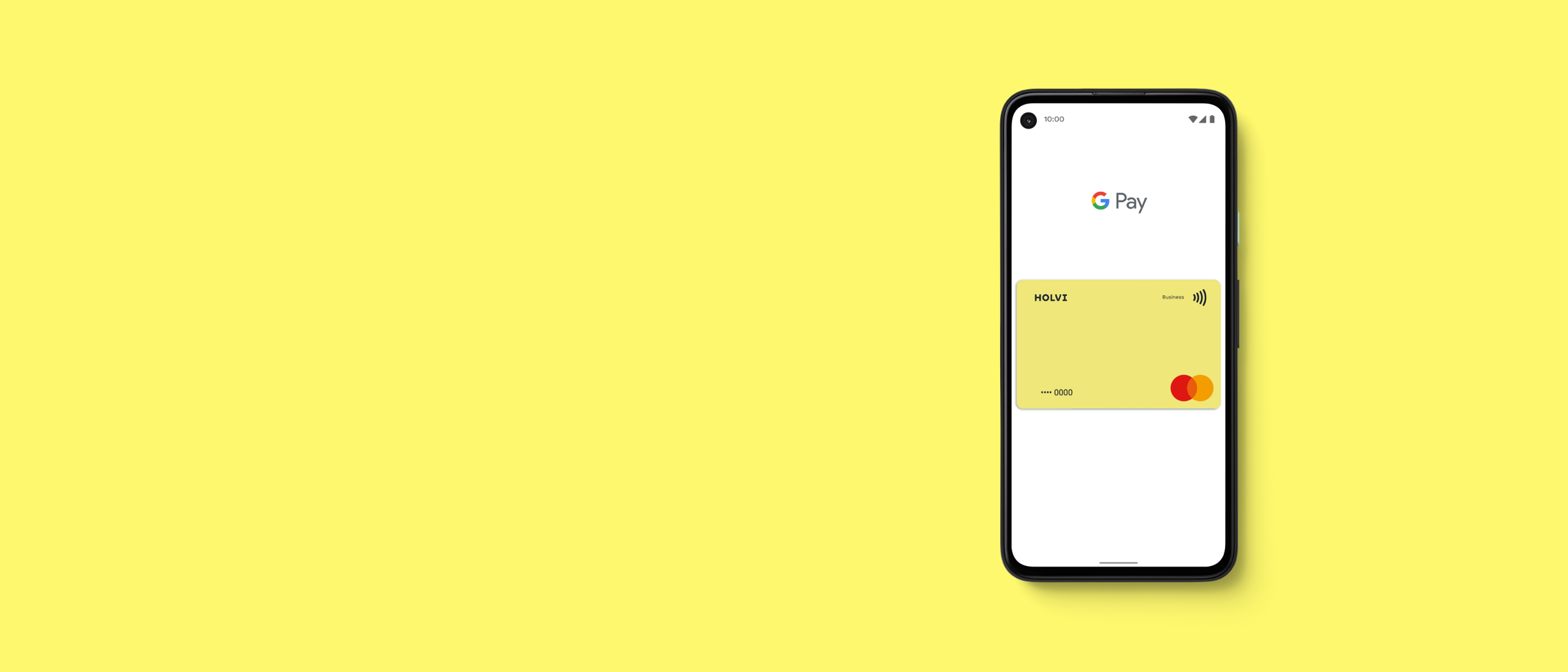 Adding your Holvi card to Google Pay takes just a few moments. First, download the Holvi app from the Google Play store. Then just follow the instructions in the app to order your card and add it to Google Pay.