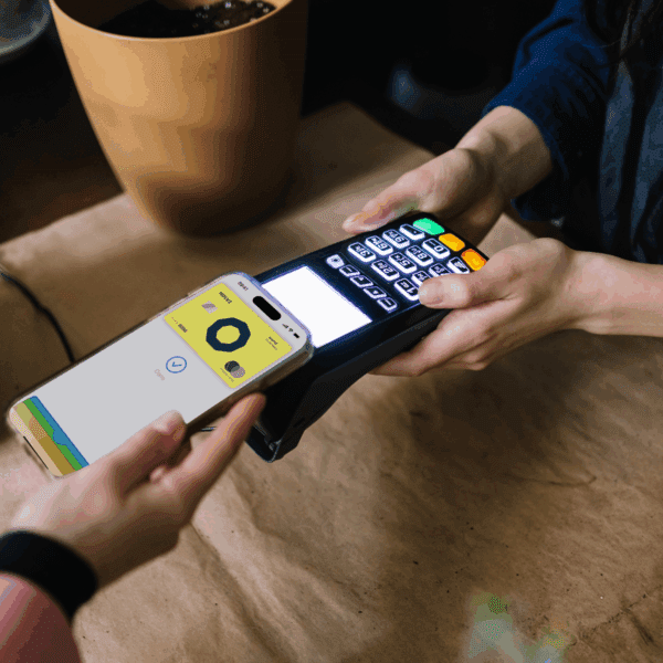 Alle Zahlungskarten von Holvi funktionieren auch mit Apple Pay und Google Pay™️. Deine physische Karte kannst du zuhause lassen – zahle einfach mit deinem Fingerabdruck oder per Gesichtserkennung.