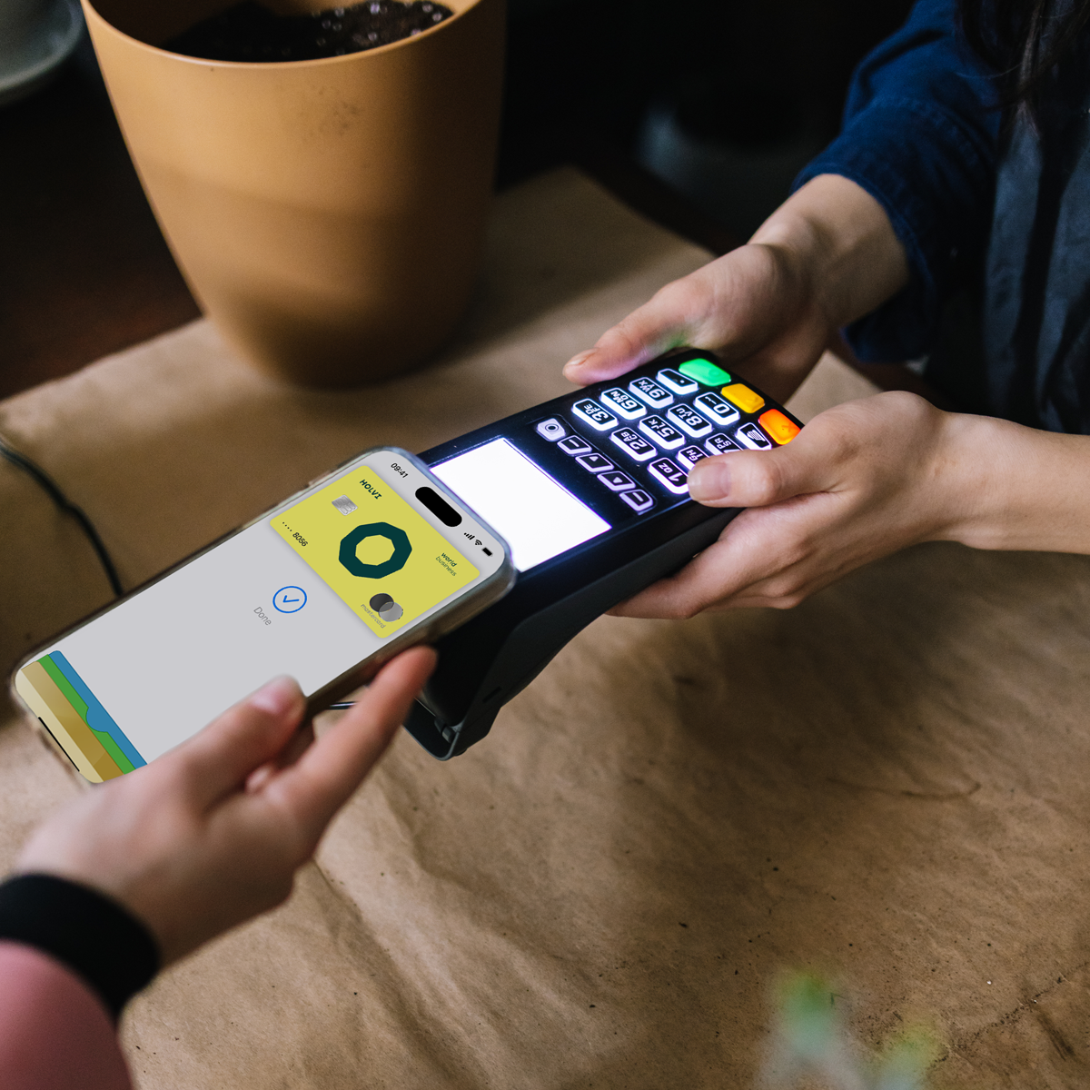 Die klassische Holvi Debitkarte hat ein höheres Zahlungslimit, außerdem kannst du mit ihr Bargeld an Automaten abheben – überall, wo Mastercard® akzeptiert wird.