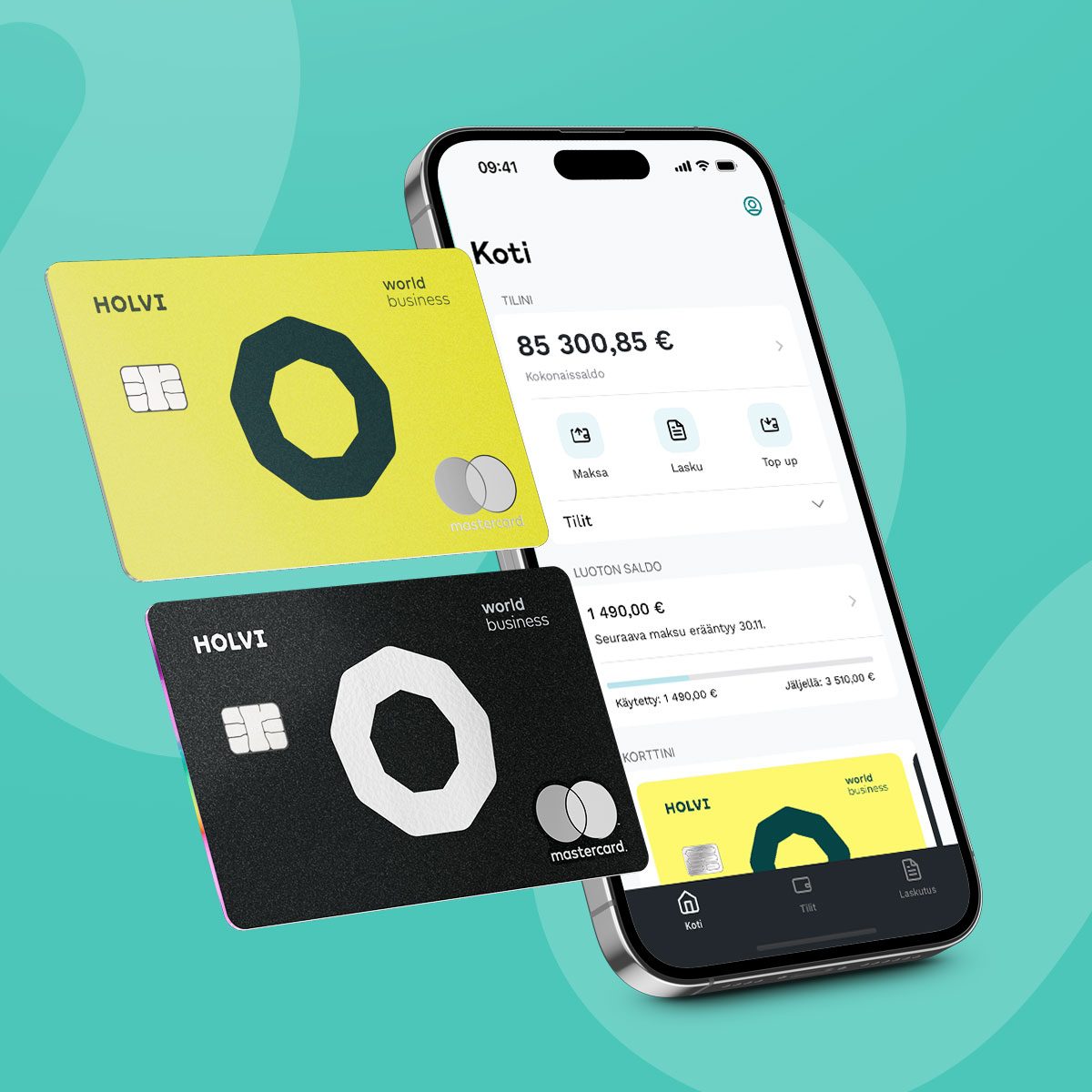 Holvi ei ole vain IBAN-tili. Tarjoamme kokonaisen työkalupakin, joka yhdistää tilin, maksukortit, verkkokaupan, laskutuksen ja kirjanpidon valmistelun.