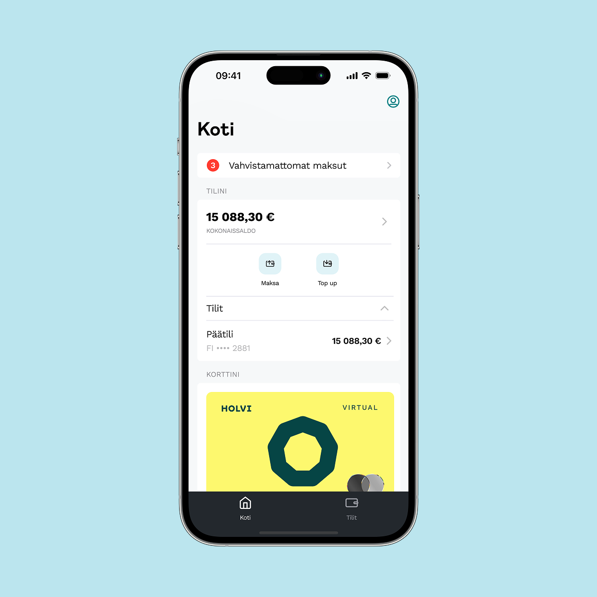 Holvi ei ole vain IBAN-tili. Tarjoamme kokonaisen työkalupakin, joka yhdistää tilin, maksukortit, verkkokaupan, laskutuksen ja kirjanpidon valmistelun.